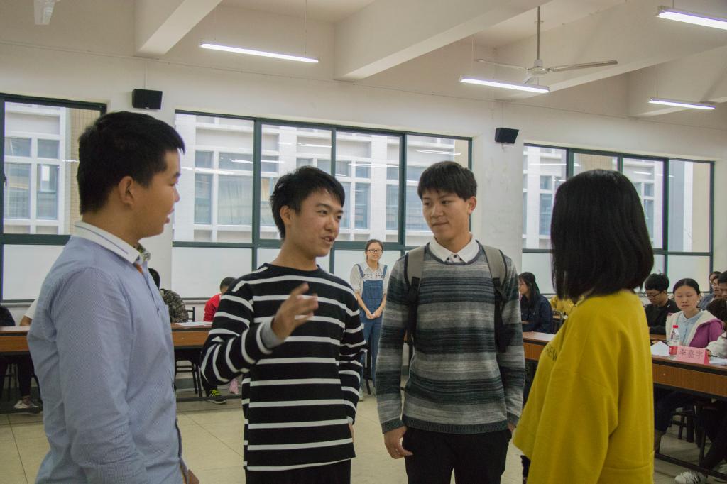 活動開始,主持人對連選輔導(dǎo)員和主席團成員的到來表示歡迎。隨后“青春不散”劇組登場開始表演,當(dāng)表演到尾聲處楊宇豪同學(xué)與室友打破僵局和好時,全場同學(xué)都發(fā)出了善意的笑聲。在“夢想遠航”劇組演出的《轉(zhuǎn)過身,面向陽光》中,付志航同學(xué)為大家展現(xiàn)了一名由自卑變成自信的積極少年。“小仙女上天組”最后帶著《航天燃料》劇本登場,他們的演出分為鮮明的四幕,在每一幕的轉(zhuǎn)換之前為大家留下思考同時解決疑問。三個經(jīng)過精心排演的心理短劇獲得了大家的一致好評。最后,在評委的仔細(xì)商討下,“夢想遠航”劇組榮獲本次大賽第一名。